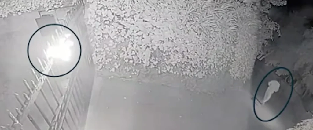 - Surveillance captured him igniting the exterior gate at the residence around 4 a.m.
