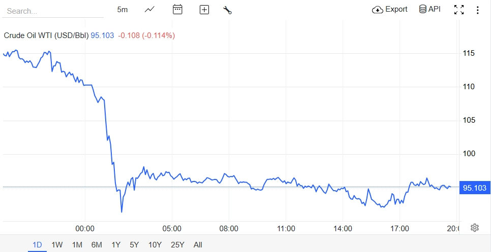 | Brent Crude Oil | $109.27 per barrel | $94.50 per barrel | -15% to -16% | Immediate supply surge expectation |