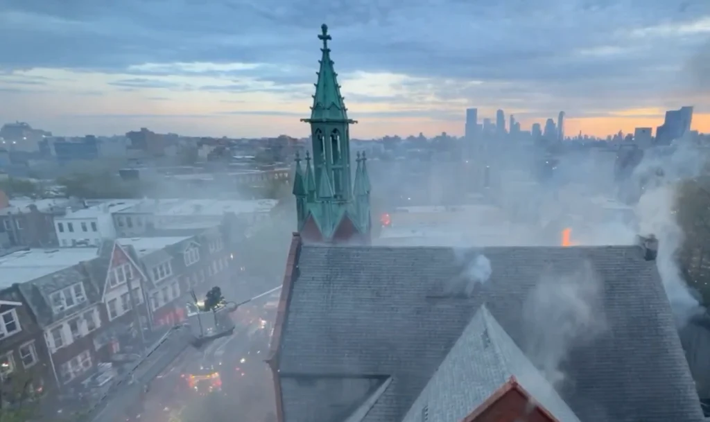 🚨 NOW: One of the OLDEST churches in New York City is currently up in flames